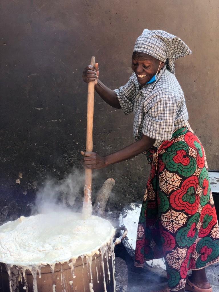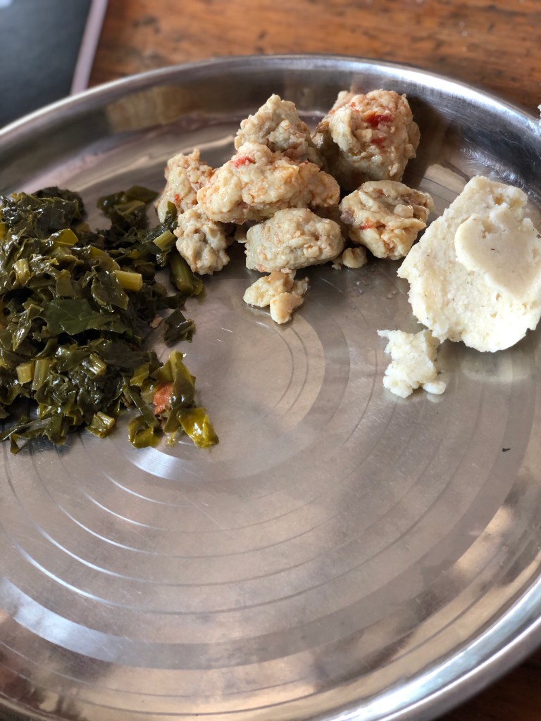 To end this week, I will write about the lunch, as everybody knows how much I love food…. Lunch time is generally 30 minutes between 11 and 12:30, as each class is being called one after the other once the food is being cooked. You have to see these brave ladies preparing food for 500 meals every day! 50kg of corn flour is used for their daily nshima, and the giant spoons are very funny to see. However, every week has exactly the same menu: nshima, vegetables (they call it Chinese cabbage, but not sure it is the same one we know…), and the only variation is between beans, little dried fish, or eggs (300 for one meal, call it THE giant scrambled eggs!). I have to admit I generally don’t eat lunch except when it is eggs day, ie on Fridays!