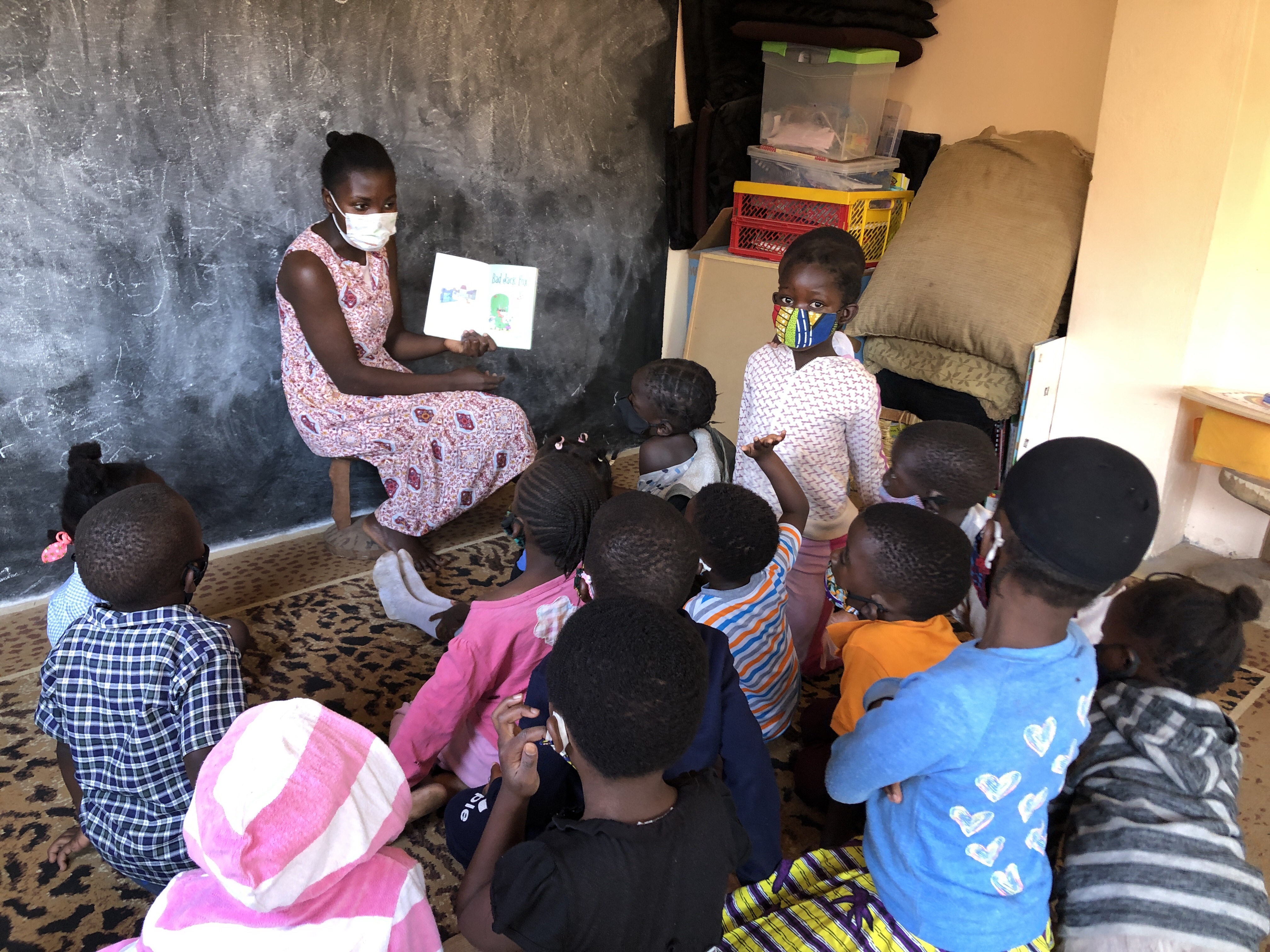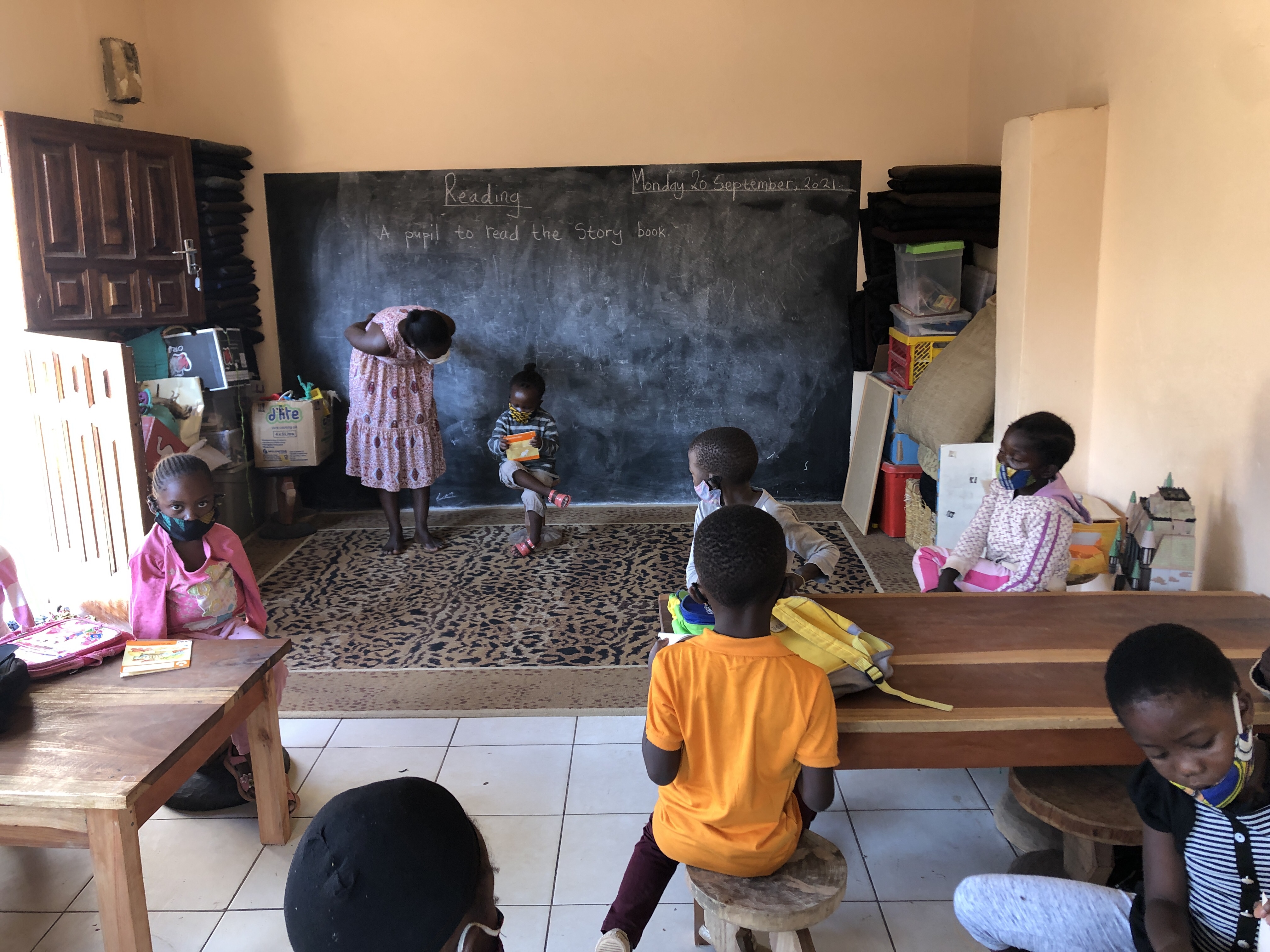 Then after reading three stories to the class while waiting for their lunch time, amongst which there was one called the Princess in a paper bag (that I highly recommend to any parents!), the lunch break arrived. I knew nothing could go down my throat then as I was still feeling rather down inside, and just accompanied Monica. Her lunch, like all the other teachers and students, was composed of the daily nshima, Chinese vegetable and beans, like Monday. Monica like Mercy was also not sponsored from Chikumbuso and got hired through a regular job vacation application. Her fist grade is also with 32 kids, split in 2 classes due to CoVid.