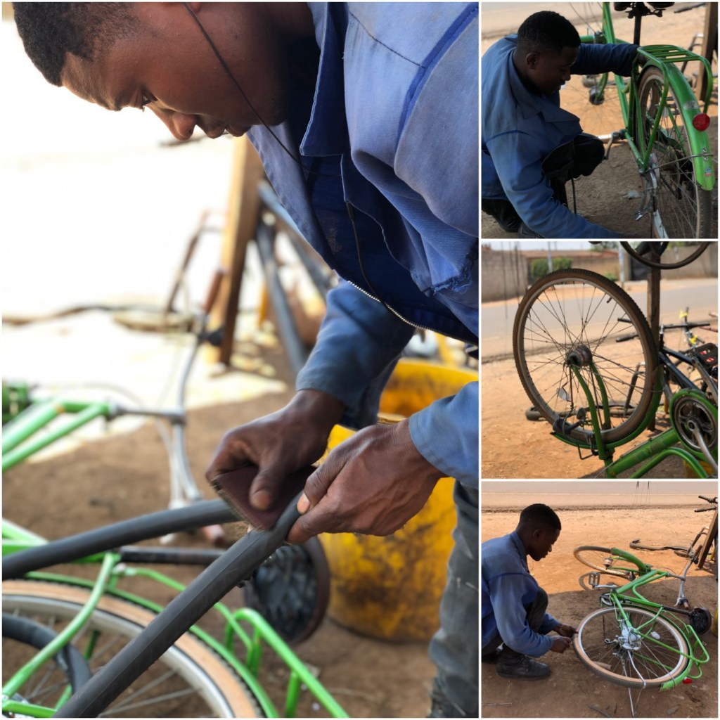The little event of the day was probably that I got a flat tire on my back wheel, on the way back from school. However, I was literally thinking how lucky I was. Indeed, it happened exactly half way, and a few hundred meters further, there was a cycling repair workshop alongside the road! He repaired the punctured air chamber smoothly: